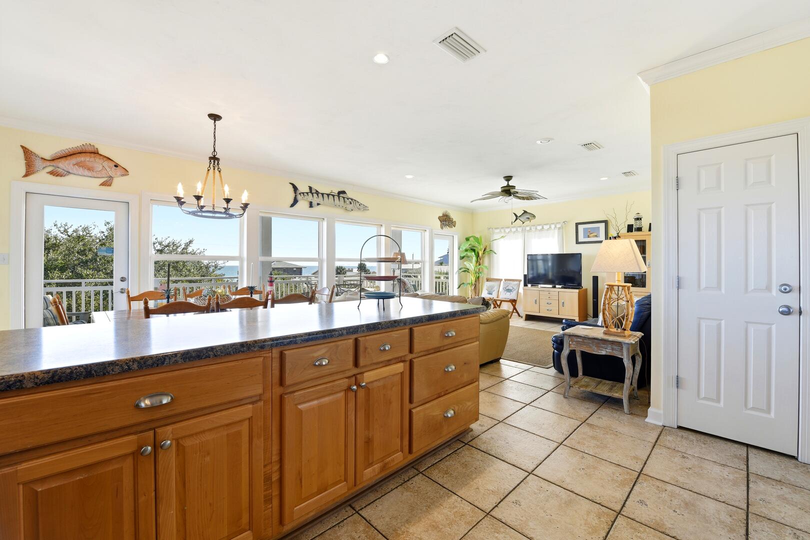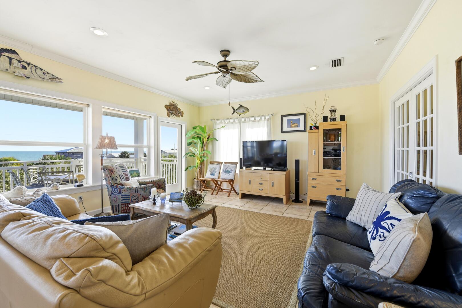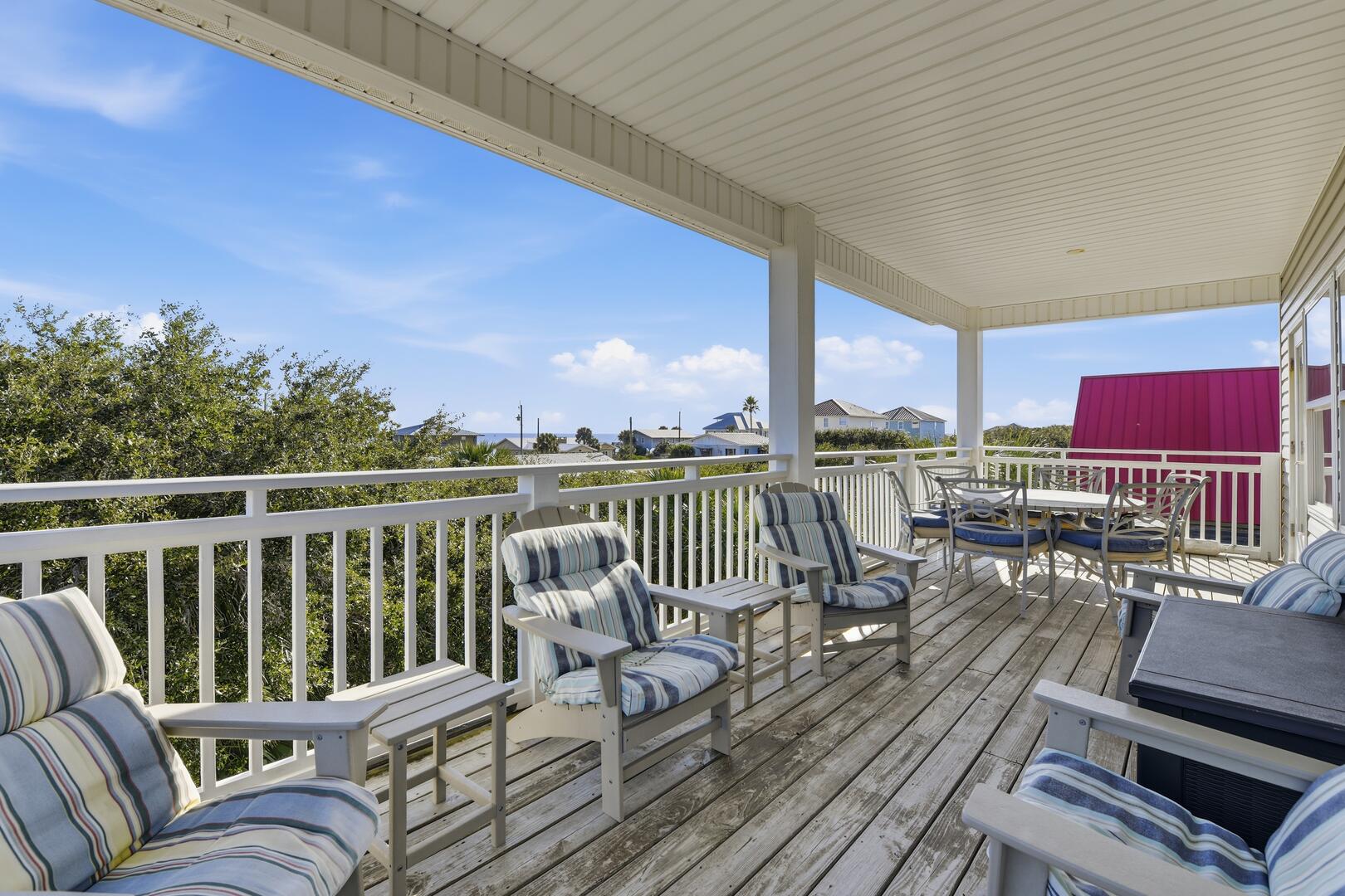 THE MINUTE YOU STEP INTO A WAVE FROM IT ALL, you understand the name! You are indeed away from the noise and daily stressors, looking out at the Gulf of Mexico, hearing the sounds of the waves. Decorated with your pleasure in mind, each room prompts you to exhale, relax and soak up the views. There is plenty of space for all, with three bedrooms on the first floor and one on the top floor just off the living area. Imagine yourself and your family and friends hanging out in the spacious living area or out on the covered decks, watching the pelicans dive into the Gulf of Mexico, while laughing and sharing stories. Picture yourself gathered around the large breakfast bar in the open kitchen area while fresh shrimp and oysters simmer! Bring that favorite book so you can linger by the pool with your favorite libation, or take that short walk to explore the beach in search of shells and treasure!