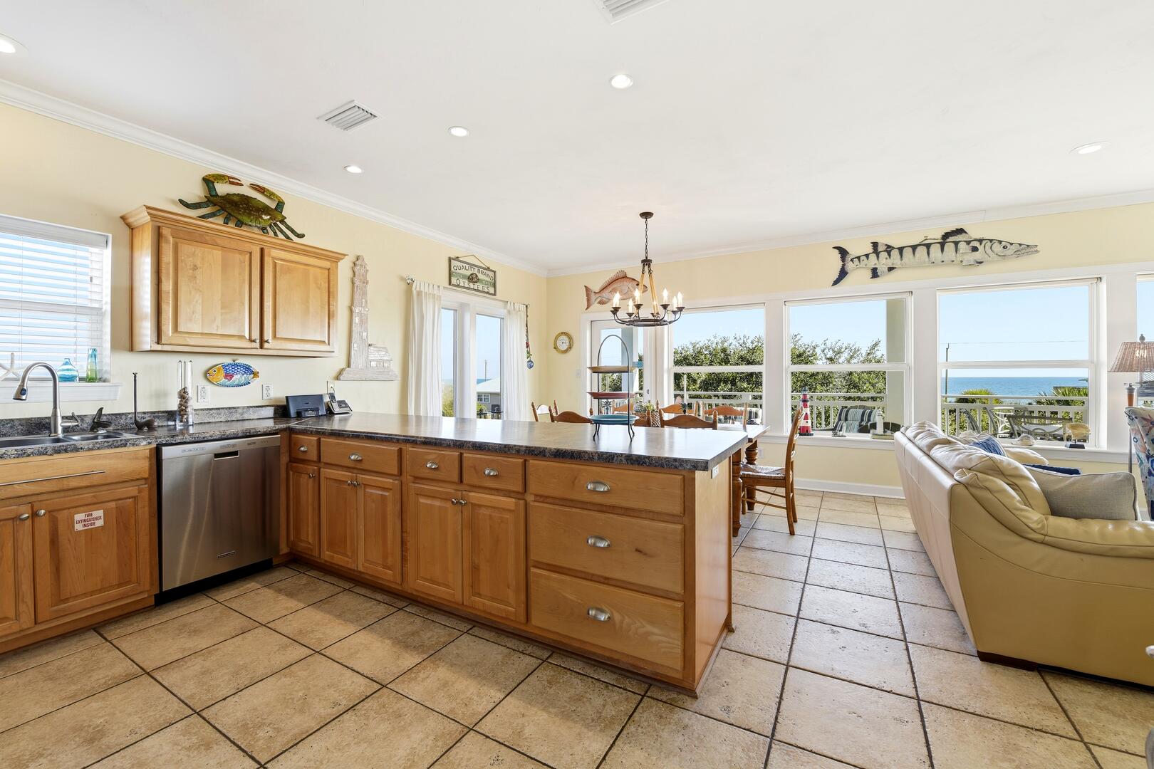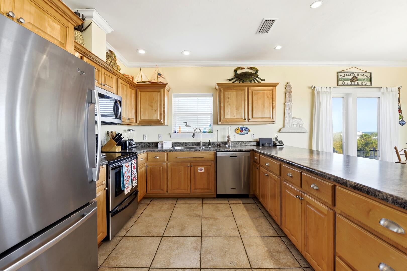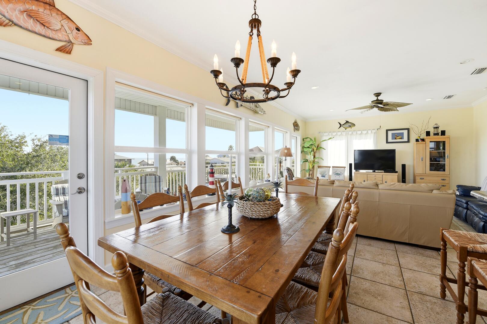 THE MINUTE YOU STEP INTO A WAVE FROM IT ALL, you understand the name! You are indeed away from the noise and daily stressors, looking out at the Gulf of Mexico, hearing the sounds of the waves. Decorated with your pleasure in mind, each room prompts you to exhale, relax and soak up the views. There is plenty of space for all, with three bedrooms on the first floor and one on the top floor just off the living area. Imagine yourself and your family and friends hanging out in the spacious living area or out on the covered decks, watching the pelicans dive into the Gulf of Mexico, while laughing and sharing stories. Picture yourself gathered around the large breakfast bar in the open kitchen area while fresh shrimp and oysters simmer! Bring that favorite book so you can linger by the pool with your favorite libation, or take that short walk to explore the beach in search of shells and treasure!