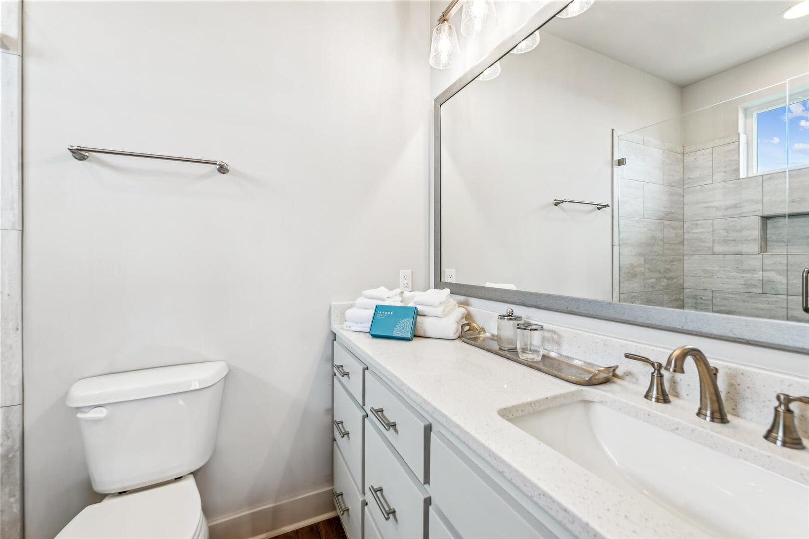 With five spacious bedrooms, each with its own private bath, everyone enjoys privacy and comfort. Located just minutes from the beach, shopping and dining, Anchor's Up blends modern luxury with the laid-back charm of the coast.