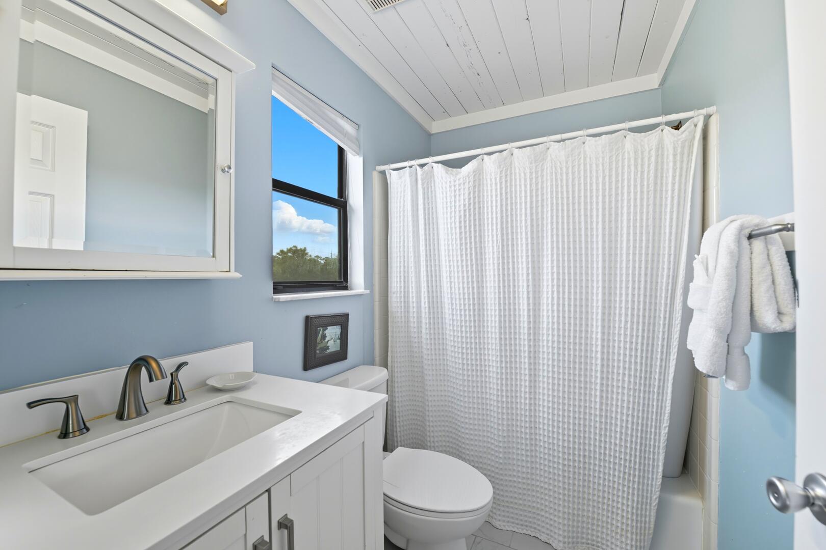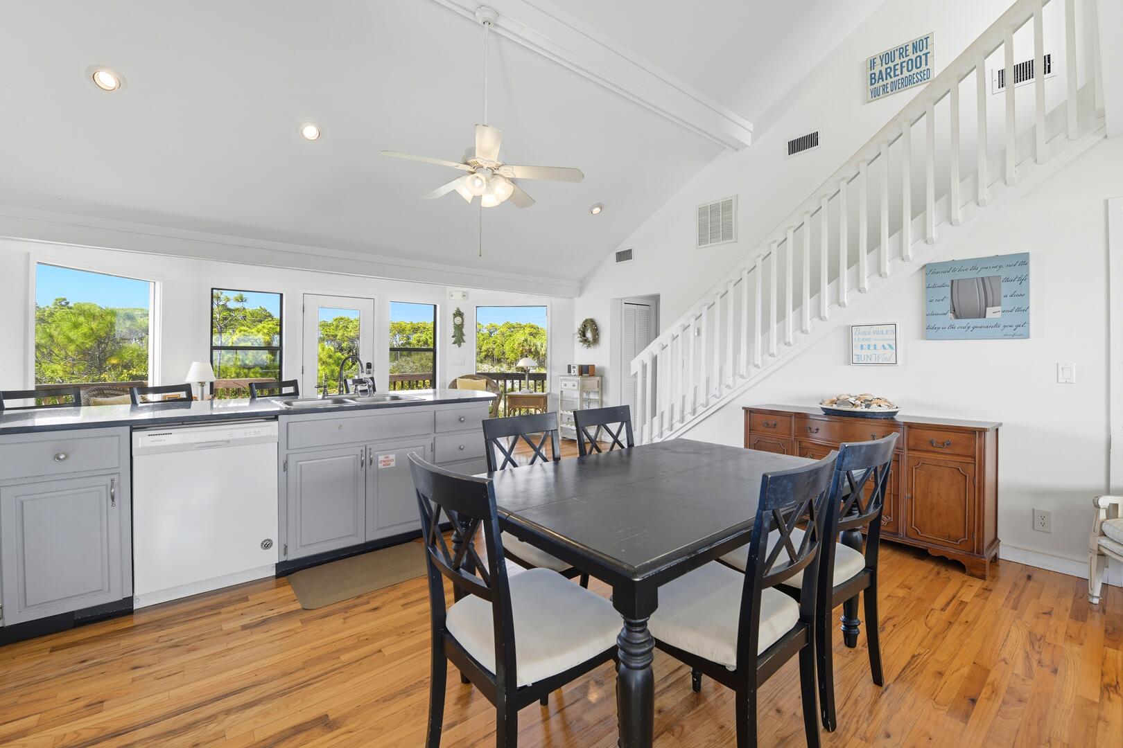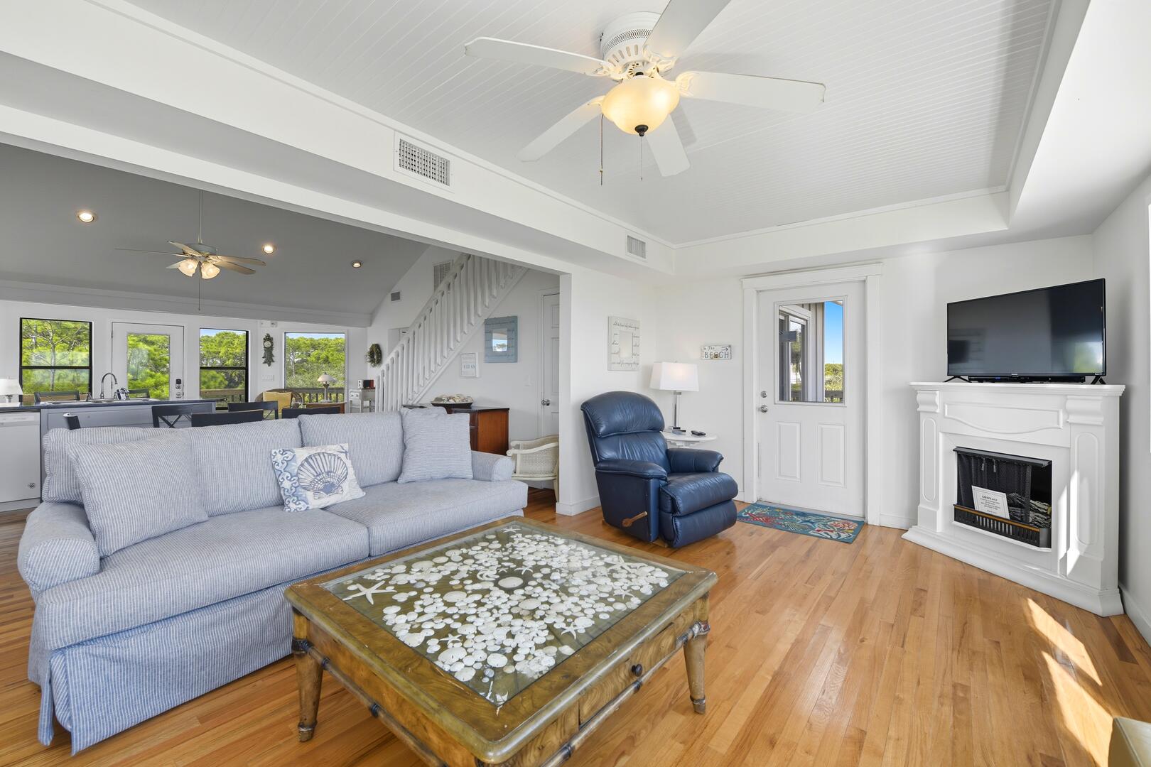 Gather for a family barbecue or enjoy drinks and dinner on the wraparound deck, complete with a grill. Watch dolphins frolic in the waves as you unwind with a book from the large lending library. Situated on a private one-acre lot, this home is located on the newly paved bike and running path, making it even more convenient for outdoor adventures.