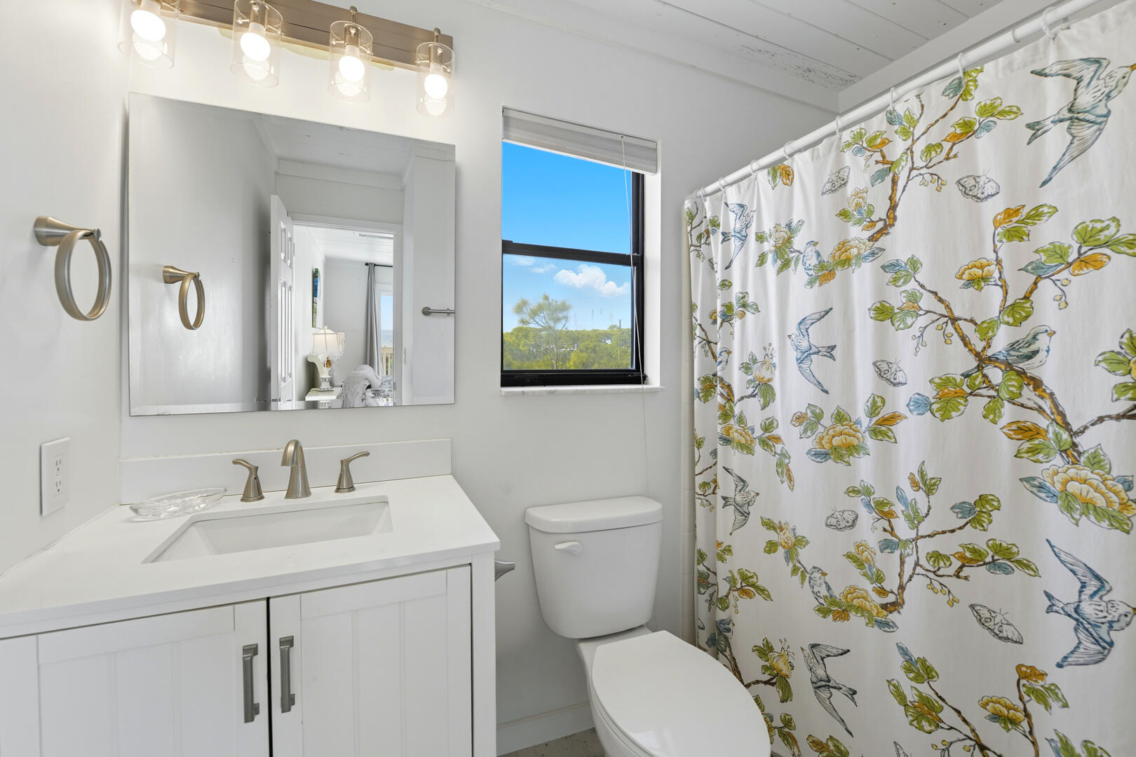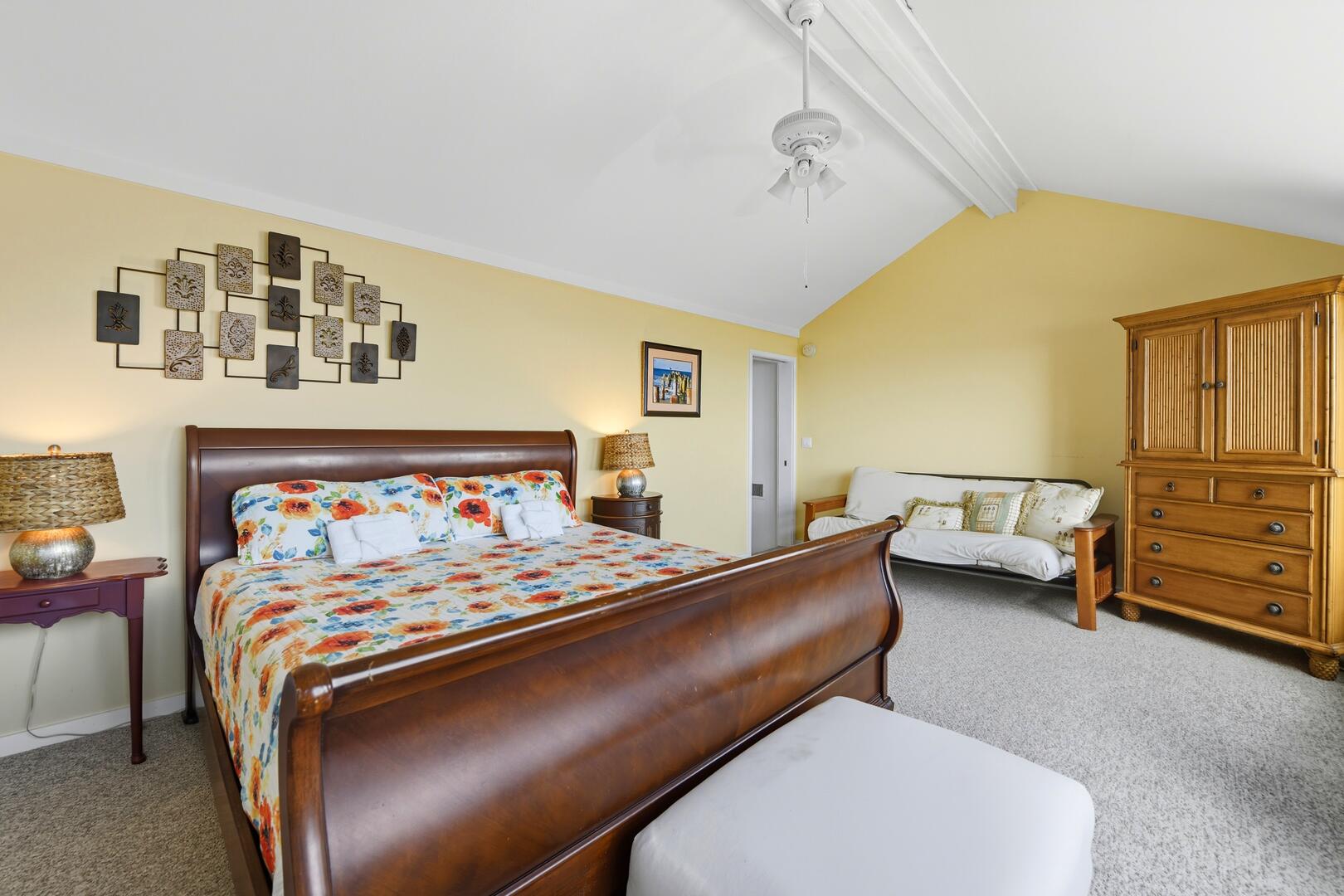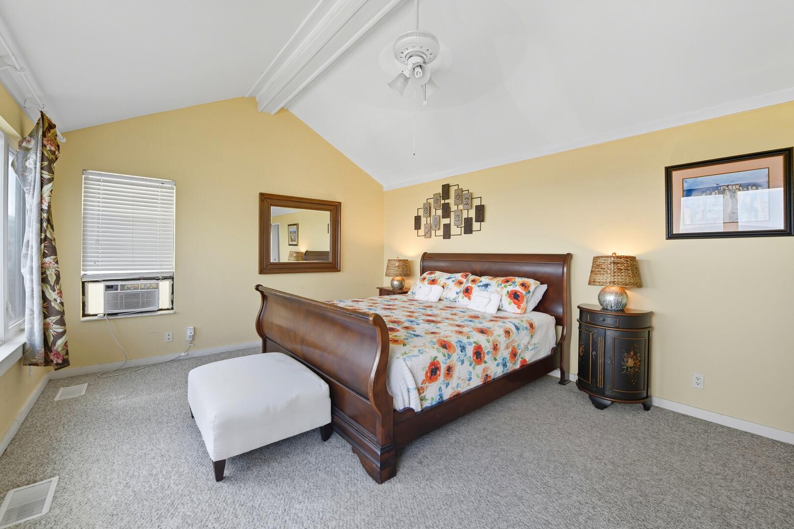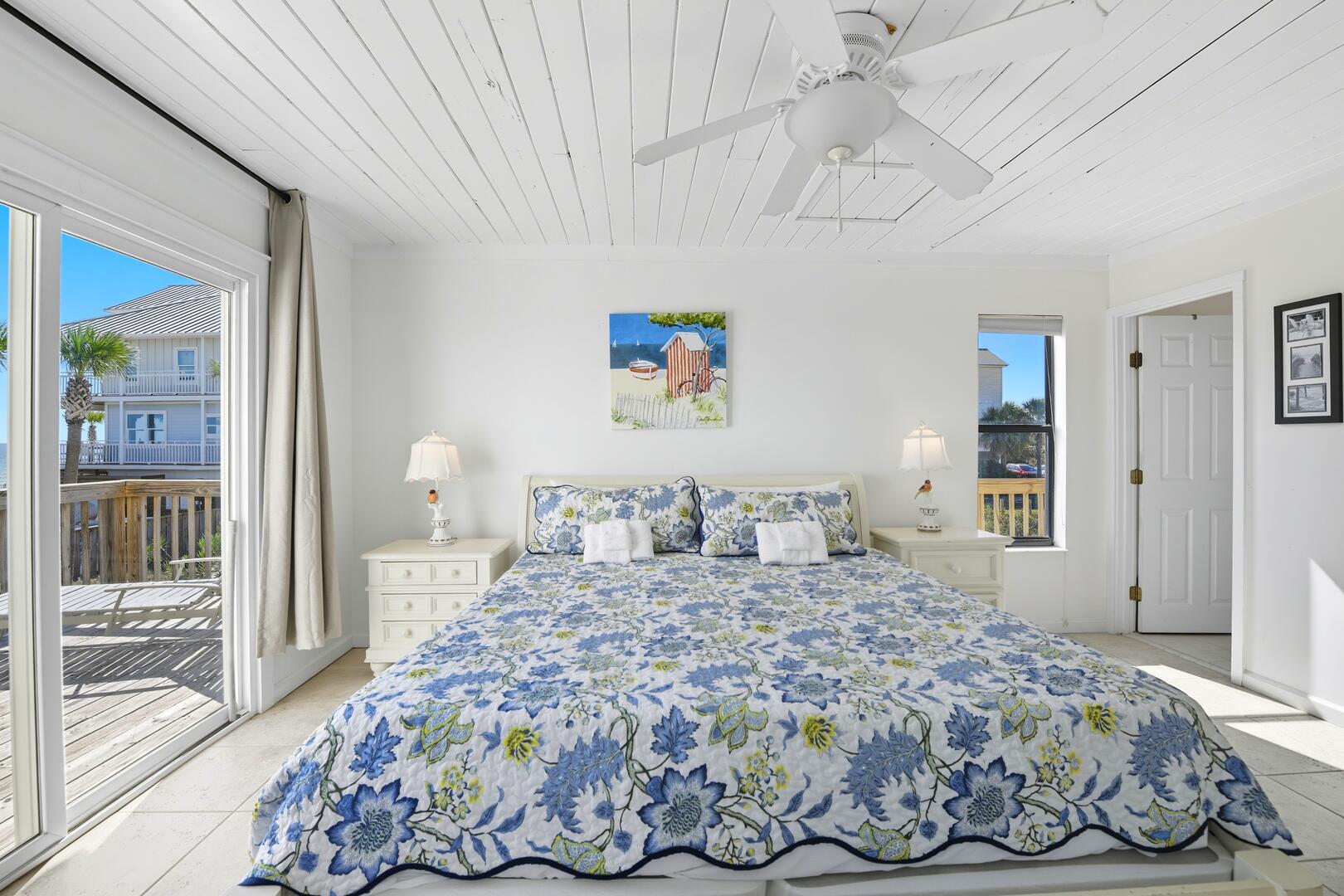 This home features three spacious bedrooms, each with a king bed. Two of the bedrooms have sliding doors leading out to sun decks overlooking the Gulf, while the third bedroom boasts a vaulted ceiling, a wall of windows offering panoramic views and a large sitting area with a full-size futon. The kitchen is equipped with granite countertops, a vaulted ceiling and additional seating for four at the breakfast bar.