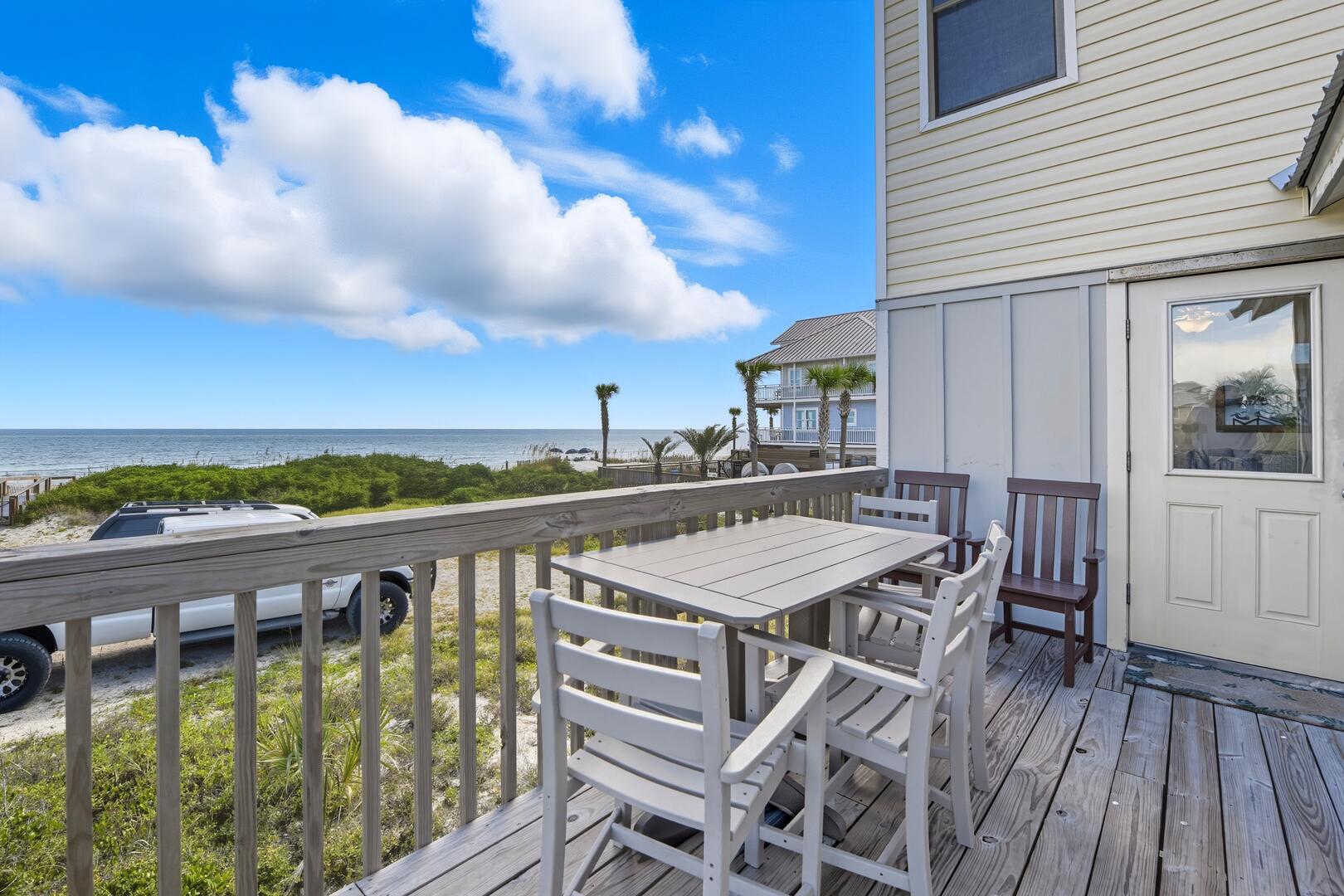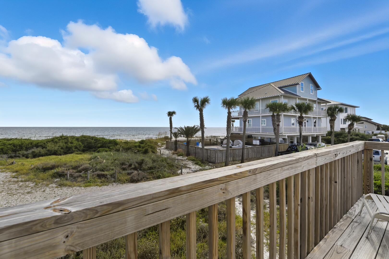 AMENITIES: Panoramic gulf views, spacious outdoor decks, grill, no street to cross to beach, Outdoor H/C shower, private boardwalk and path to beach, full size W/D, multiple TVs, covered parking, Washer and Dryer