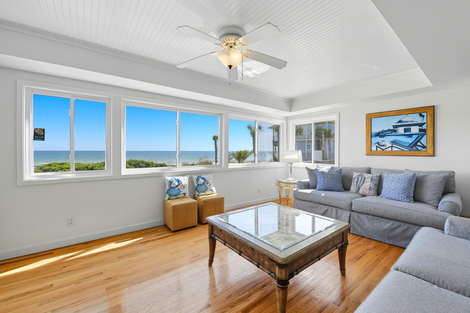 MILLION DOLLAR VIEWS AND OCEANS OF PRIVACY make Barefoot Dream one of the best values on the island! Enjoy sweeping, unobstructed ocean views from every bedroom, the great room and the kitchen. With no roads to cross, the beach is just steps away via your private beach path leading to the uncrowded sugar-white sands of the East End. Shell-seekers will delight in the treasures found just a short walk from the pristine State Park.