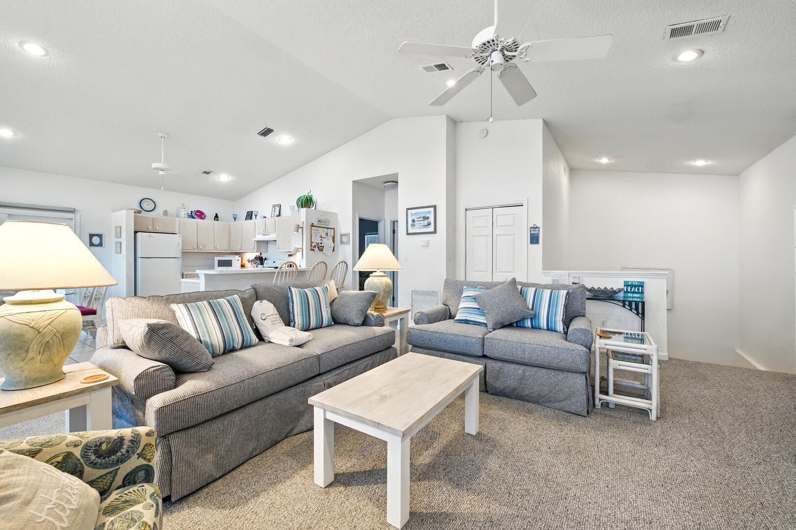 AMENITIES:Multiple TVs, well equipped kitchen, tile floors throughout main living areas, carpet in bedrooms, washer and dryer inside, large covered porches, outdoor shower, fish cleaning area, park-style charcoal grill, under house concrete parking.