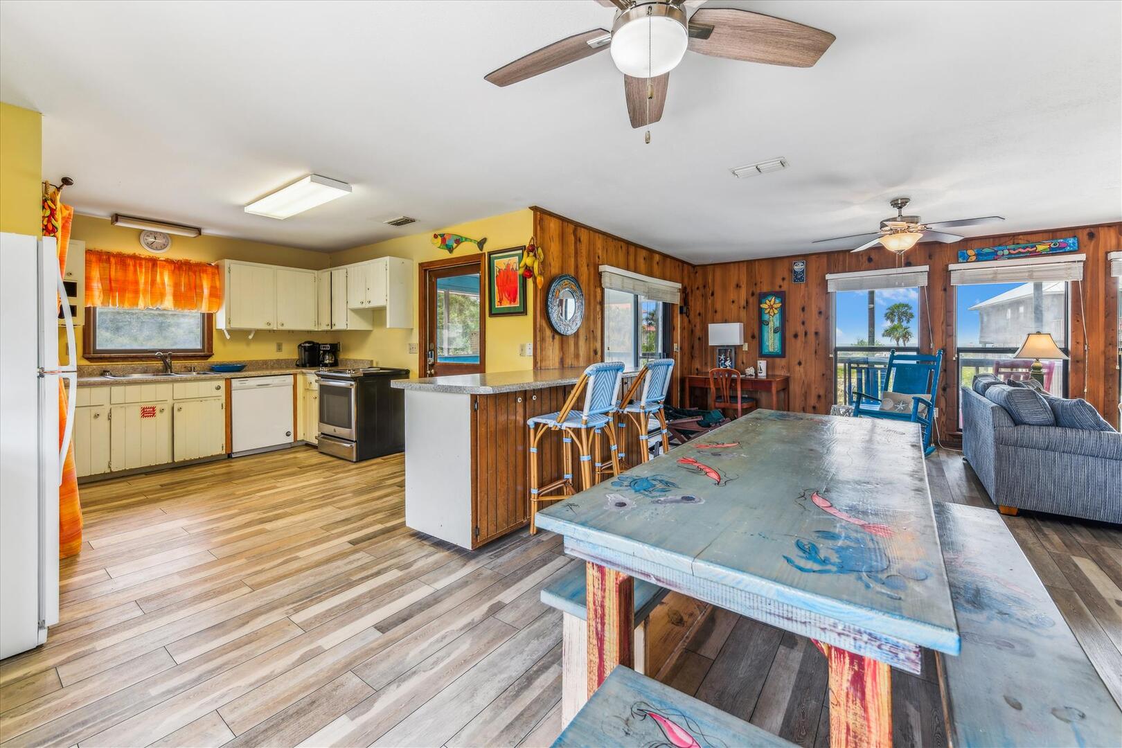 The home boasts a breezy screen porch, the perfect place to take in the cool gulf breezes. Two well-appointed bedrooms and an open-concept living room with bright, airy interiors, a well-equipped kitchen, and cozy coastal decor. Best of all, well-behaved dogs are always welcome--so your pup can enjoy the beach right alongside you. Explore the island by bike, paddleboard through the bay, or savor local seafood at nearby restaurant--all just minutes away. Whether you're staying for a weekend or an extended getaway, Brief Escape is your cozy, pet-friendly oasis on St. George Island.