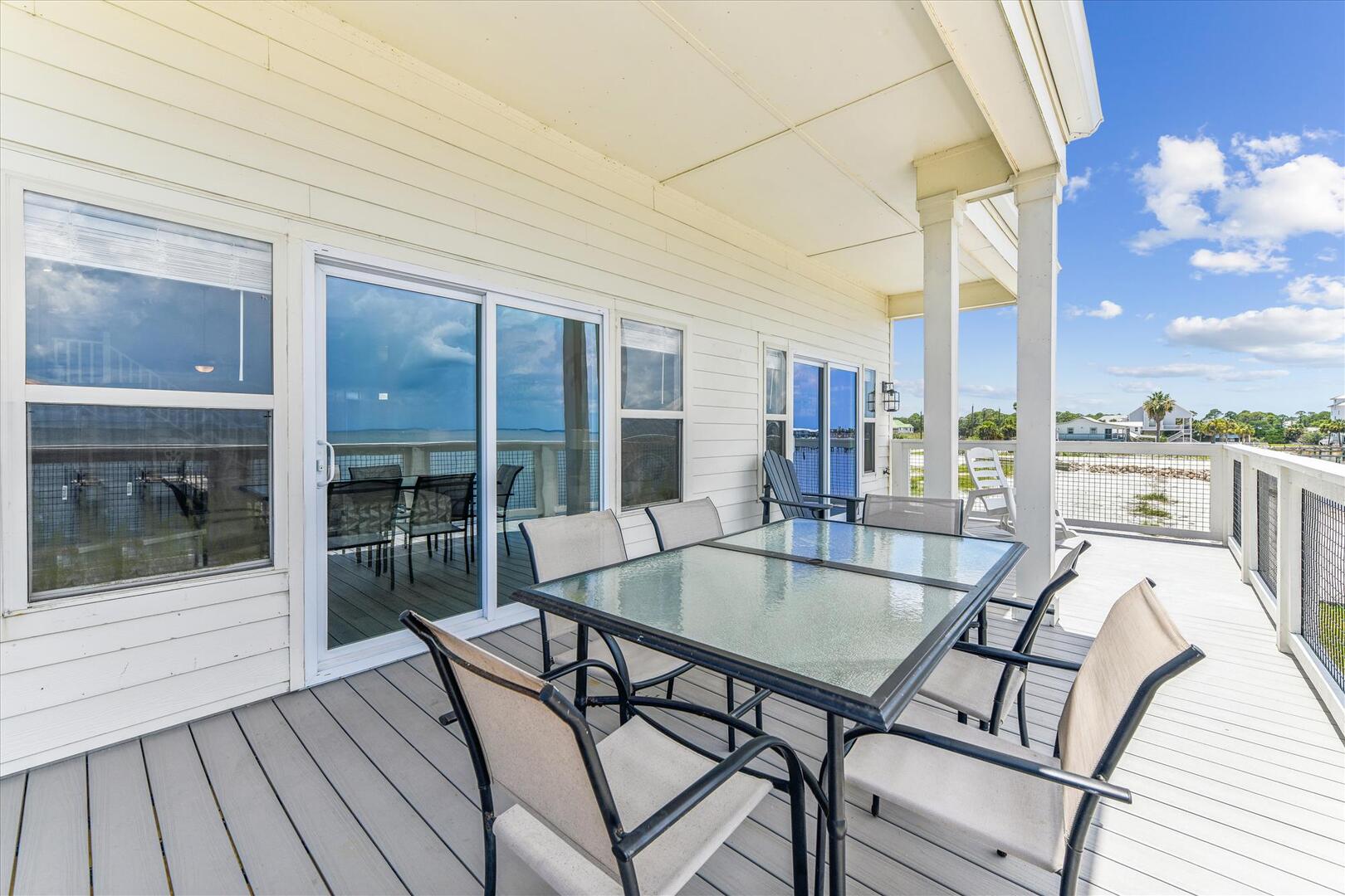 CARDINAL COVE IS THE PLACE TO BE! Formerly known as Poppy's Place, this stunning home overlooks the Apalachicola Bay- perfect for watching oyster boats, kayakers, birds, dolphins and those unforgettable sunsets! Cast your fishing line right into the Bay and enjoy your catch for dinner. This spacious home is wonderful for family get togethers! Come see why you will want to return again and again to this wonderful bayfront beauty!