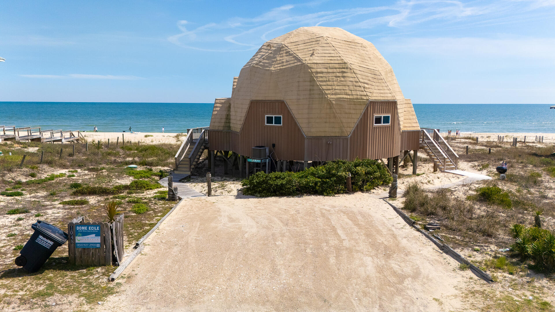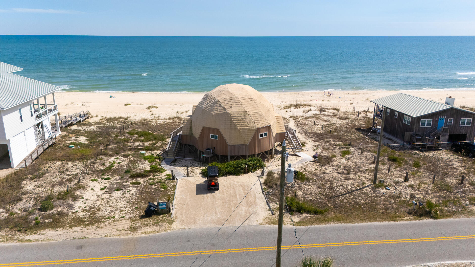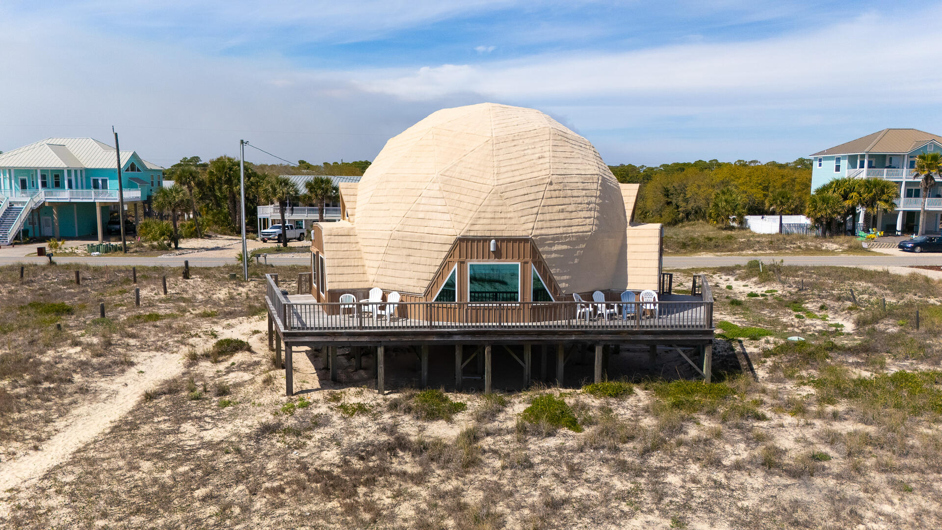 THIS UNIQUELY DESIGNED beach cottage features all natural cypress molding and finishing, an upper loft sitting area with futon, a spacious living room with comfortable furnishings and a high ceiling. You'll enjoy a beautiful view of the beach from the large, gulf front window or the wrap around sun deck. Come and stay at the Dome!