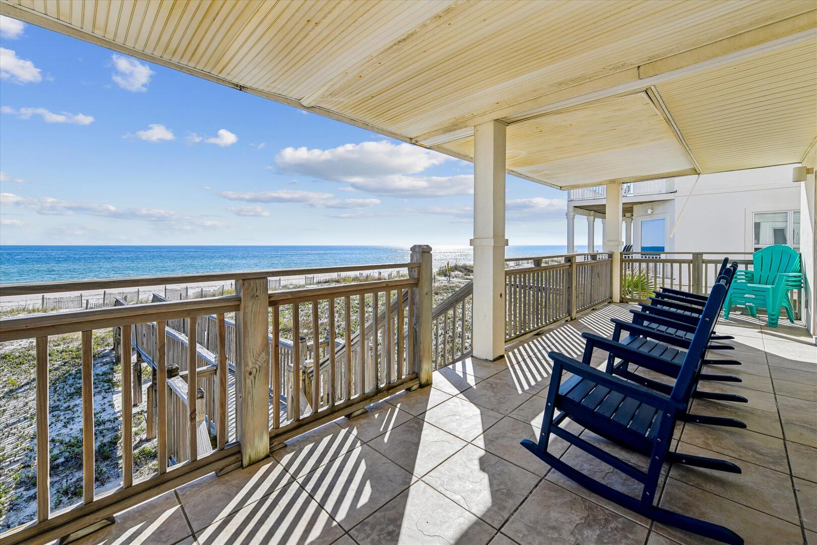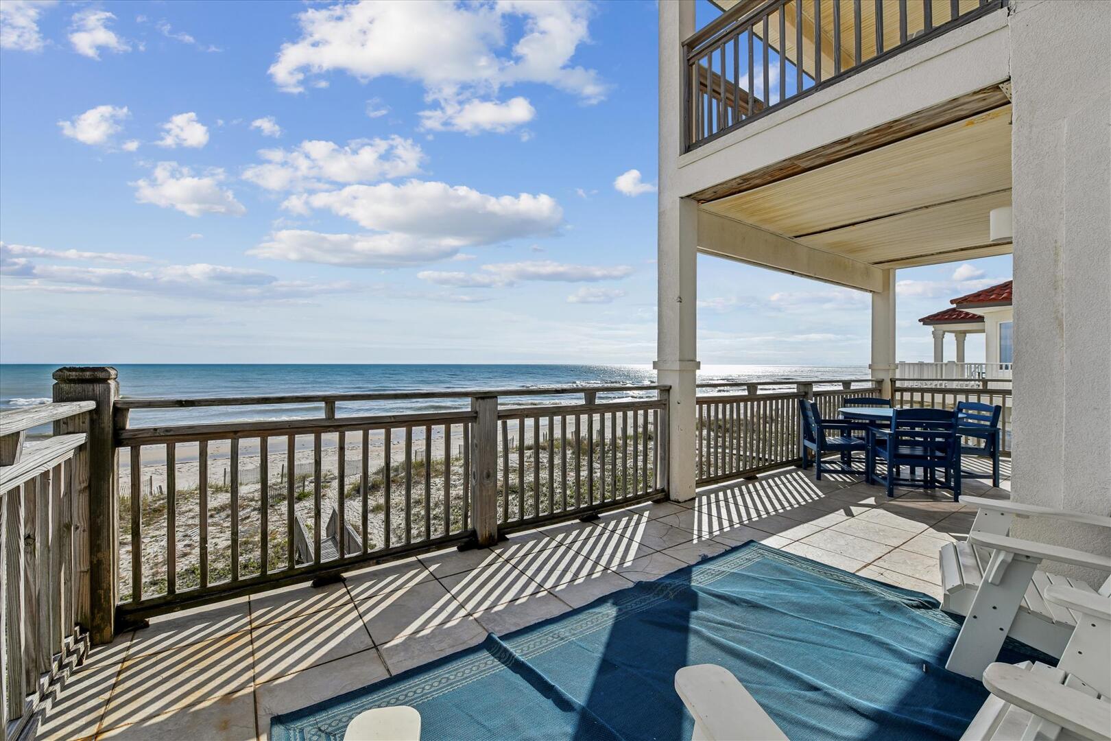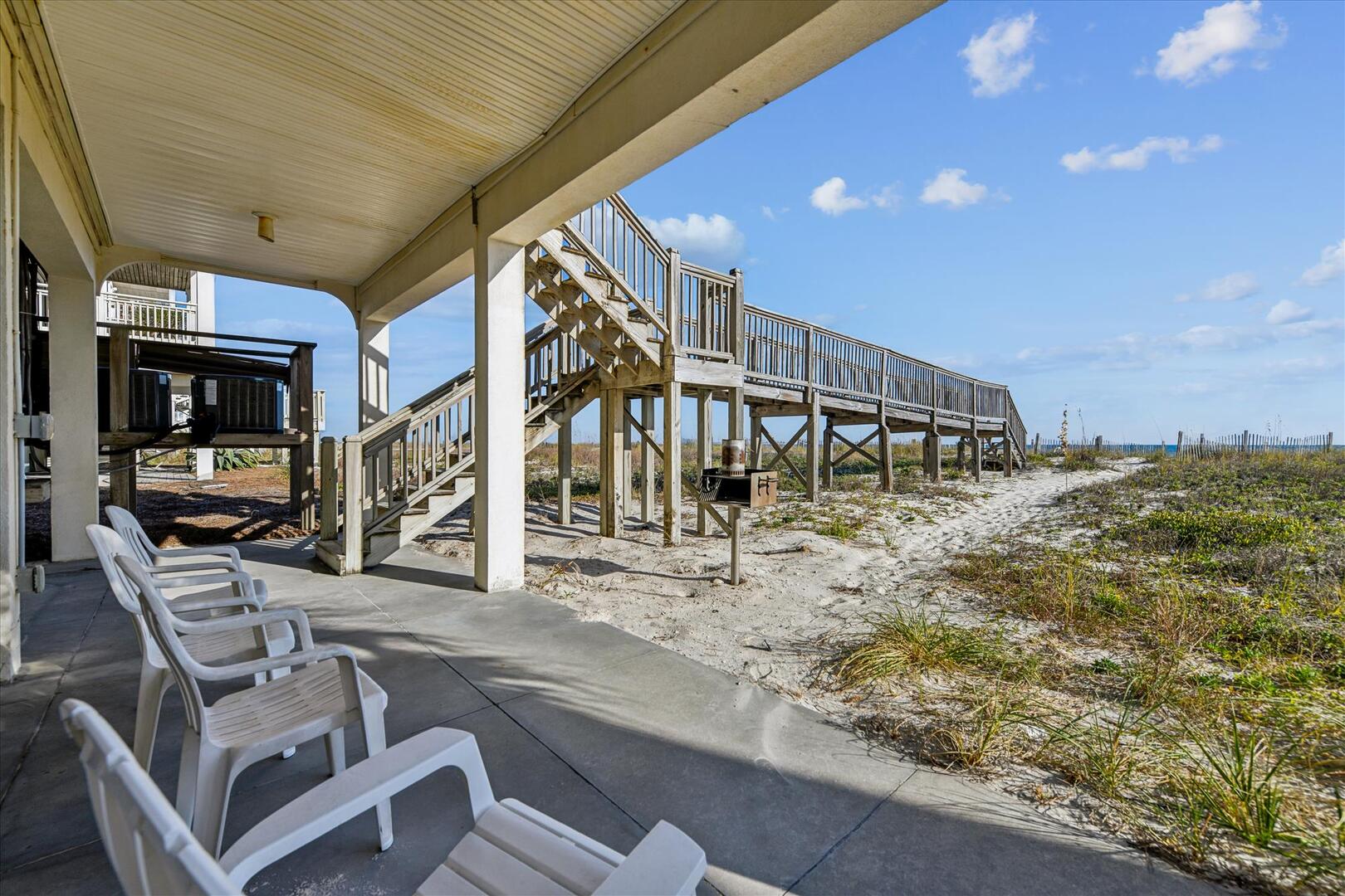 The exterior features under-house concrete parking, a fish cleaning station, an enclosed outdoor shower, double park-style grills, and the private boardwalk -- everything you need for the perfect beach getaway.