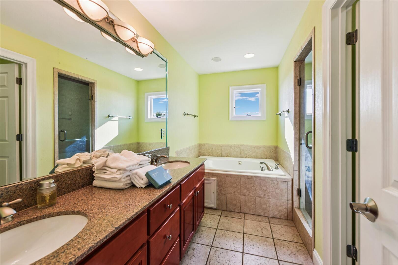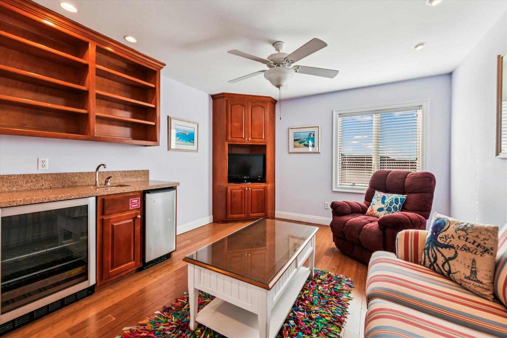 AMENITIESMultiple Smart TVs, well equipped kitchen with granite countertops and stainless steel appliances, separate wet bar with beverage refrigerator, stand alone icemaker and bar sink, tile floors throughout main living space, luxury vinyl plank in bedrooms, elevator to all levels, media room with wet bar with beverage refrigerator, ice maker and bar sink, washer and dryer, large covered porches, private 6-person hot tub at ground level, picnic table, park style charcoal grill, private boardwalk to beach. Located just a few steps from the Sunset Beach Clubhouse with heated community pool and tennis courts. GAS FIREPLACE IS NOT FOR GUEST USE.
