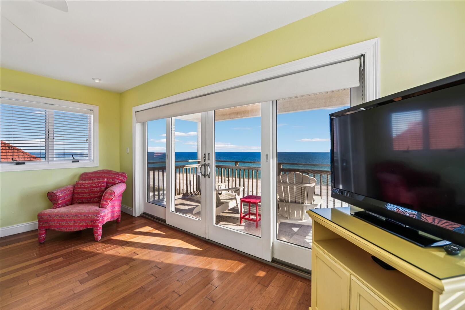 Also on the second floor is a separate media room with a large cable-equipped TV, DVD player, generous seating, and direct access to a private porch. Another porch on this level offers a modern, resort-style couch -- an ideal spot to relax with your morning coffee or evening cocktail.