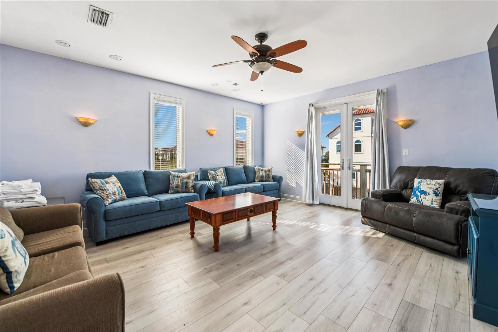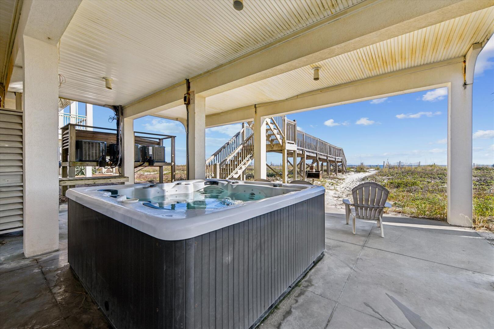 Inside, Jack Henry's Hideaway boasts four separate living areas, two wet bars, and two dining spaces, providing plenty of room for everyone to gather or spread out. A seven-person hot tub invites you to unwind after a day at the beach, while a private boardwalk leads you directly to the sugar-white sands and emerald waters of the Gulf.