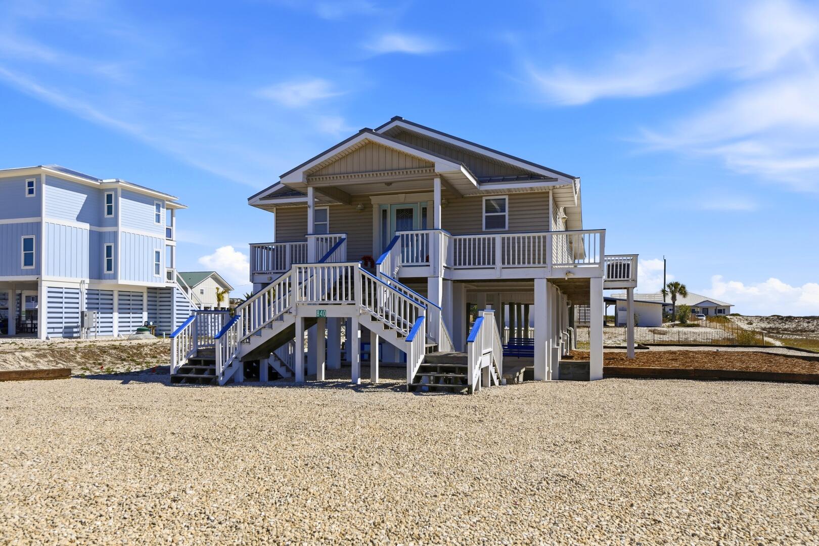 YOU'LL LOVE the great beach view from the large covered deck! This comfortable home offers easy access to the Gulf, just steps away. This home is attractively furnished with a large open living area. The parking underneath the house is tall enough to accommodate your water toys.