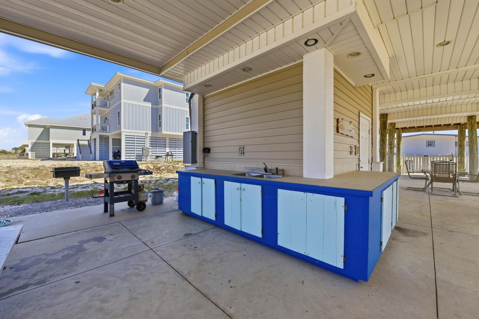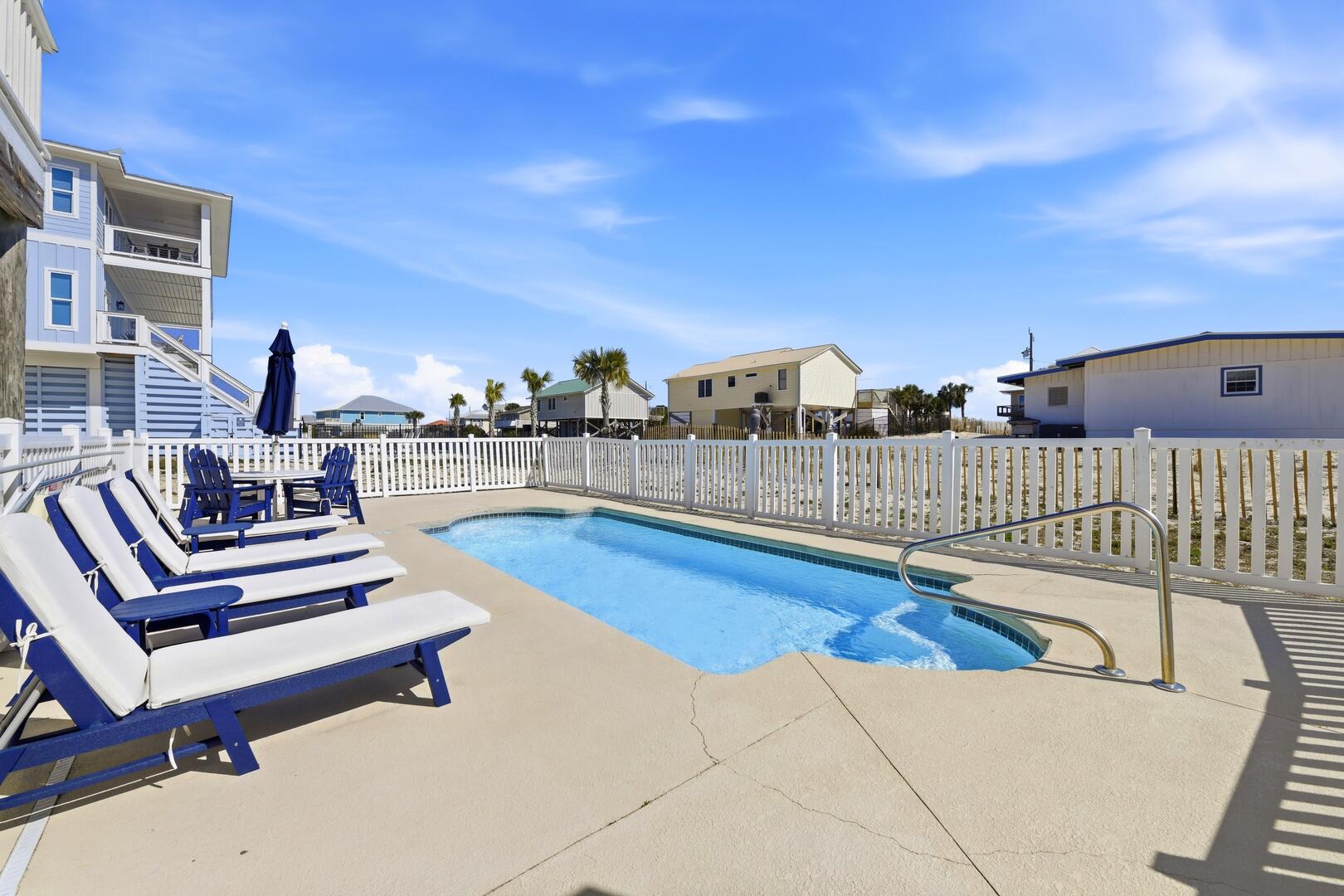 AMENITIES:Open floor plan with large kitchen with granite countertops, Keurig, center island with seating, stainless appliances, tile floors throughout, washer and dryer, pool heater/chiller (for an additional fee), extra large covered porch with new polywood furniture, hot and cold outdoor enclosed shower, gas grill, picnic table, full concrete under house with under house parking, adjacent to bike path and beach access path.