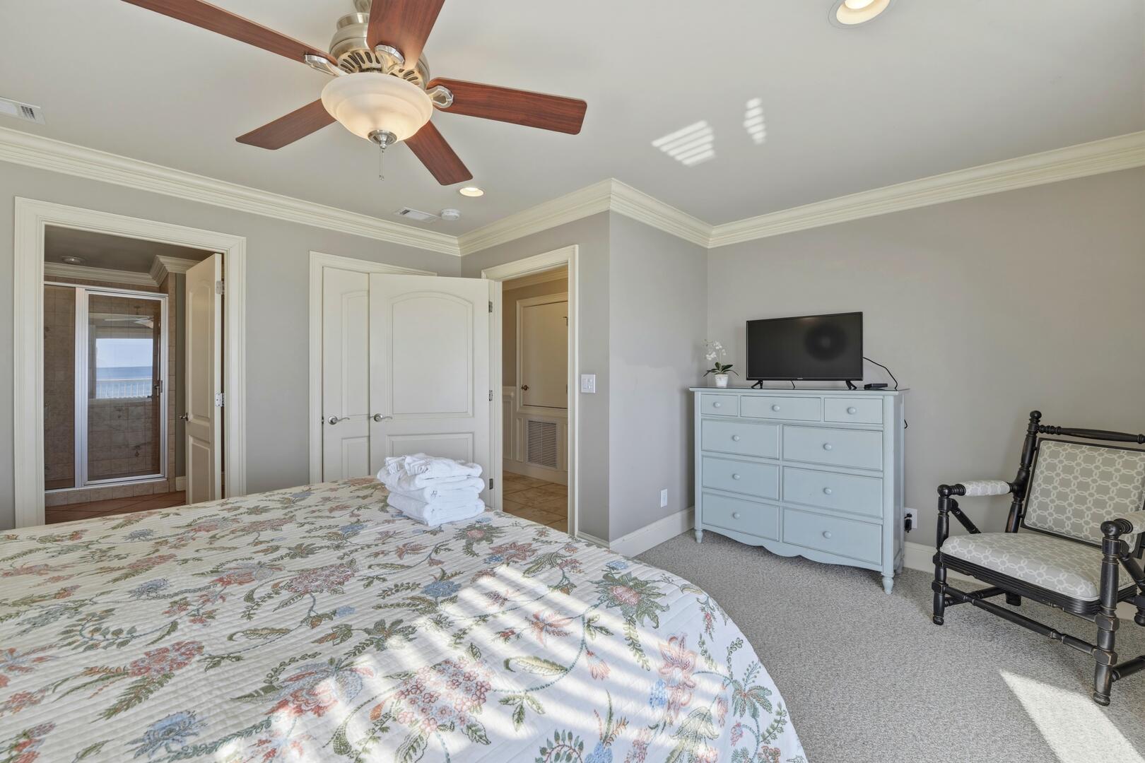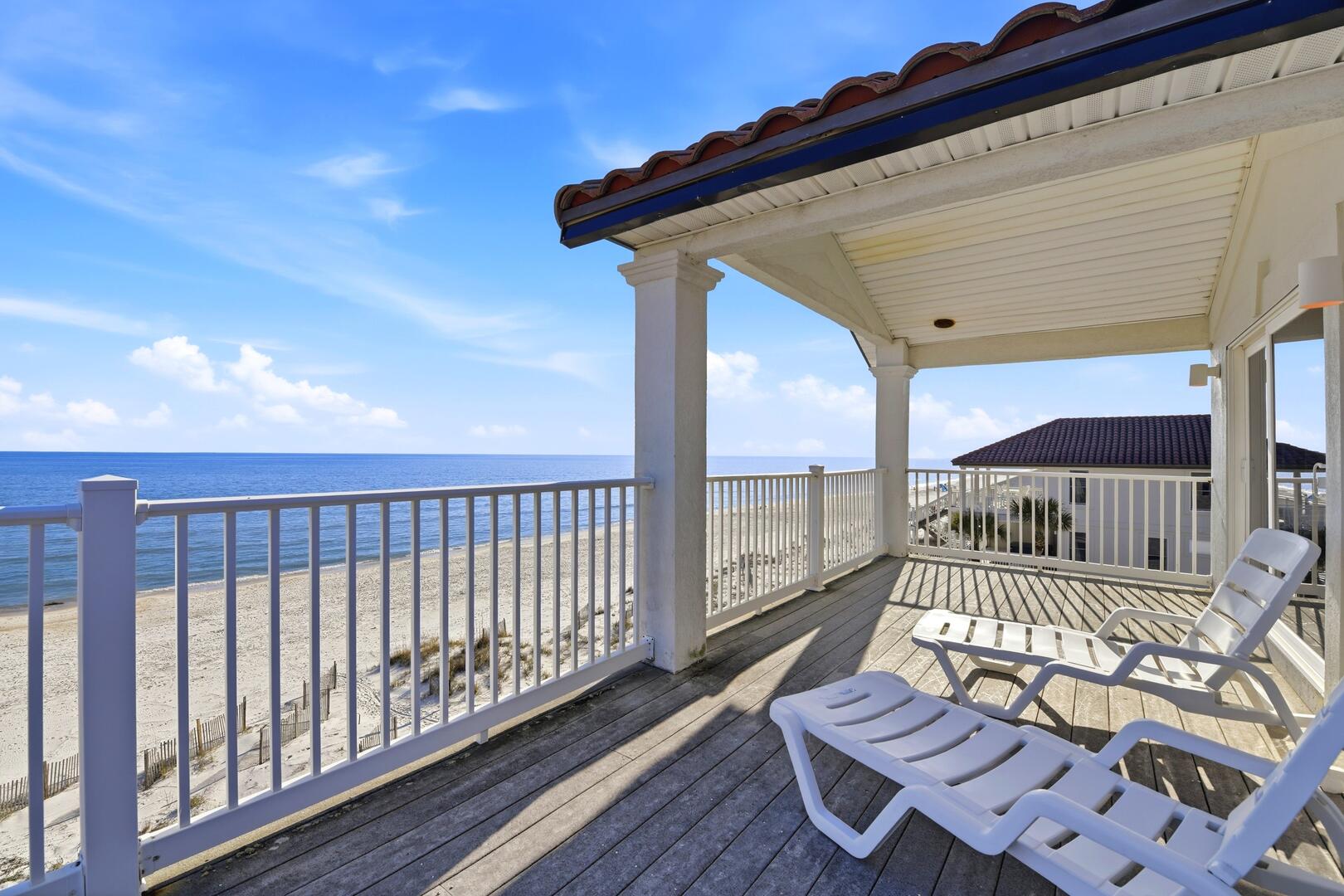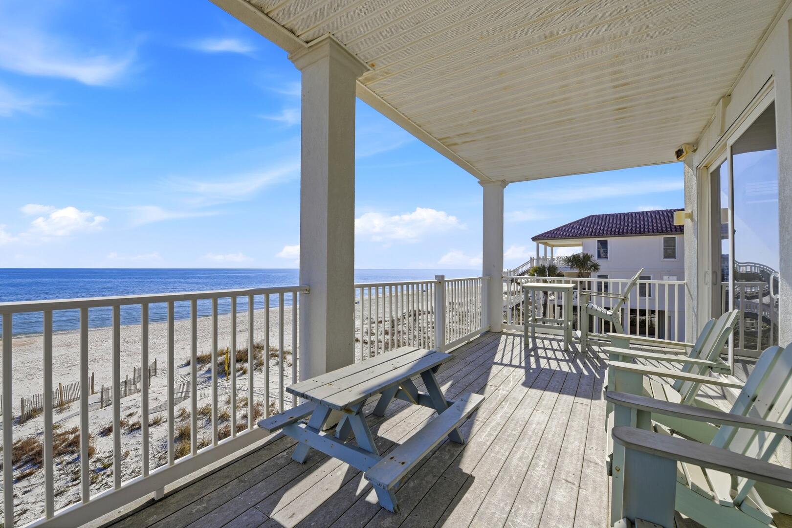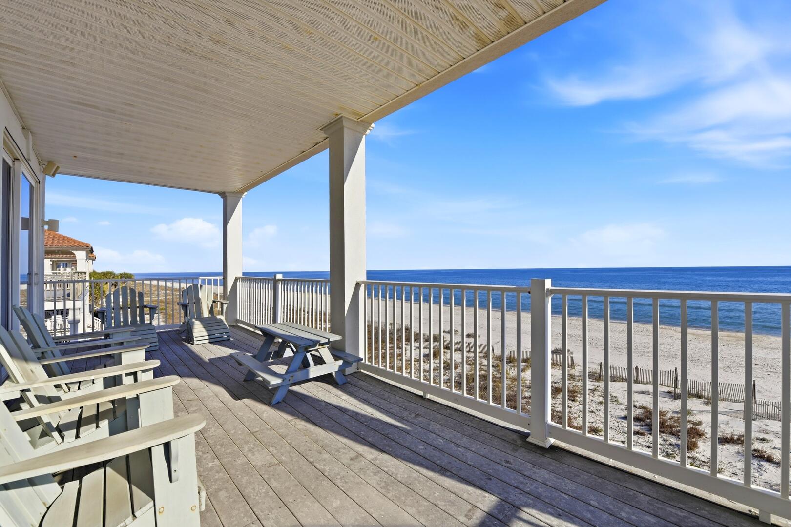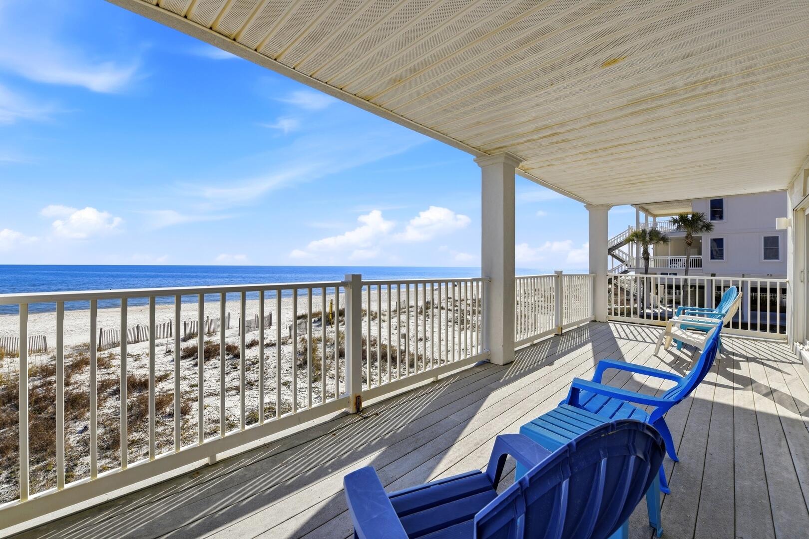 Step outside to expansive covered porches on every level, all overlooking the Gulf. Whether sipping morning coffee, enjoying an afternoon breeze, or watching spectacular sunsets, these outdoor spaces offer a front-row seat to the beauty of Sunset Beach.