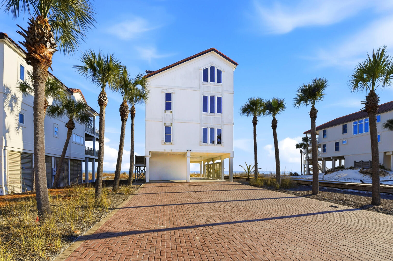This stunning three-level beachfront home features 6 spacious bedrooms and 7 full baths, comfortably accommodating up to 14 guests. Thoughtfully designed for both relaxation and entertaining, Sunkissed offers an elevator servicing all floors, ensuring convenient access throughout the home.