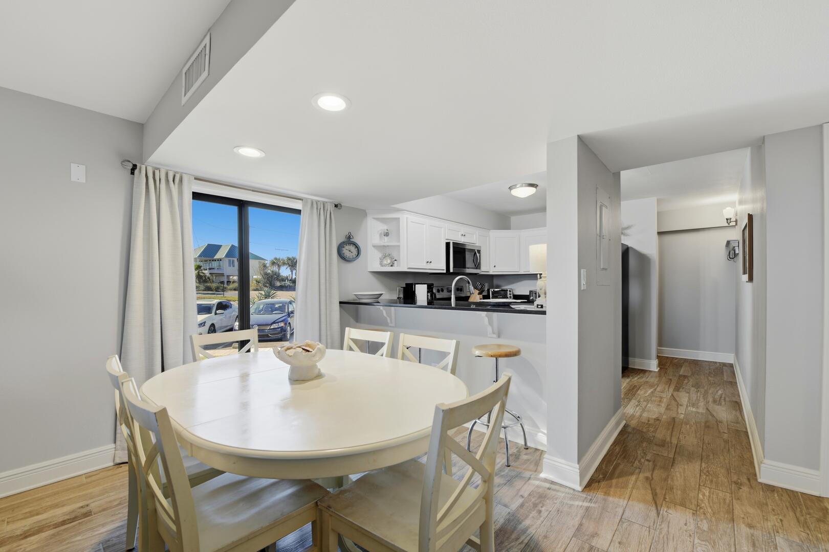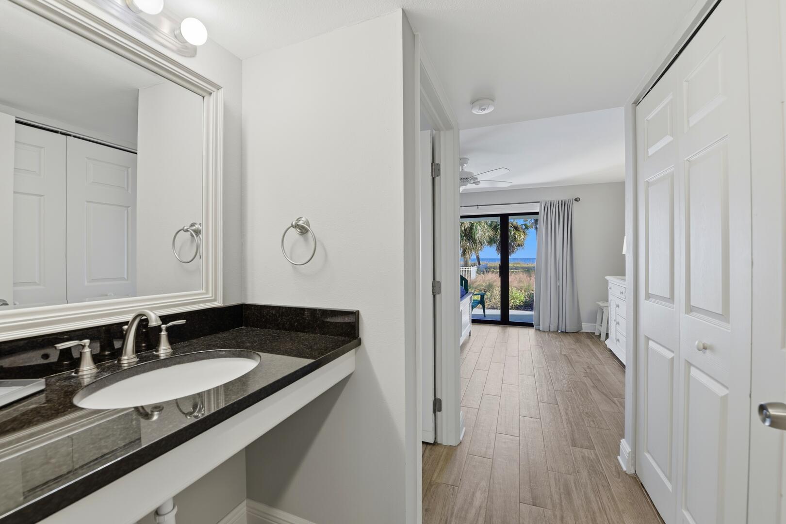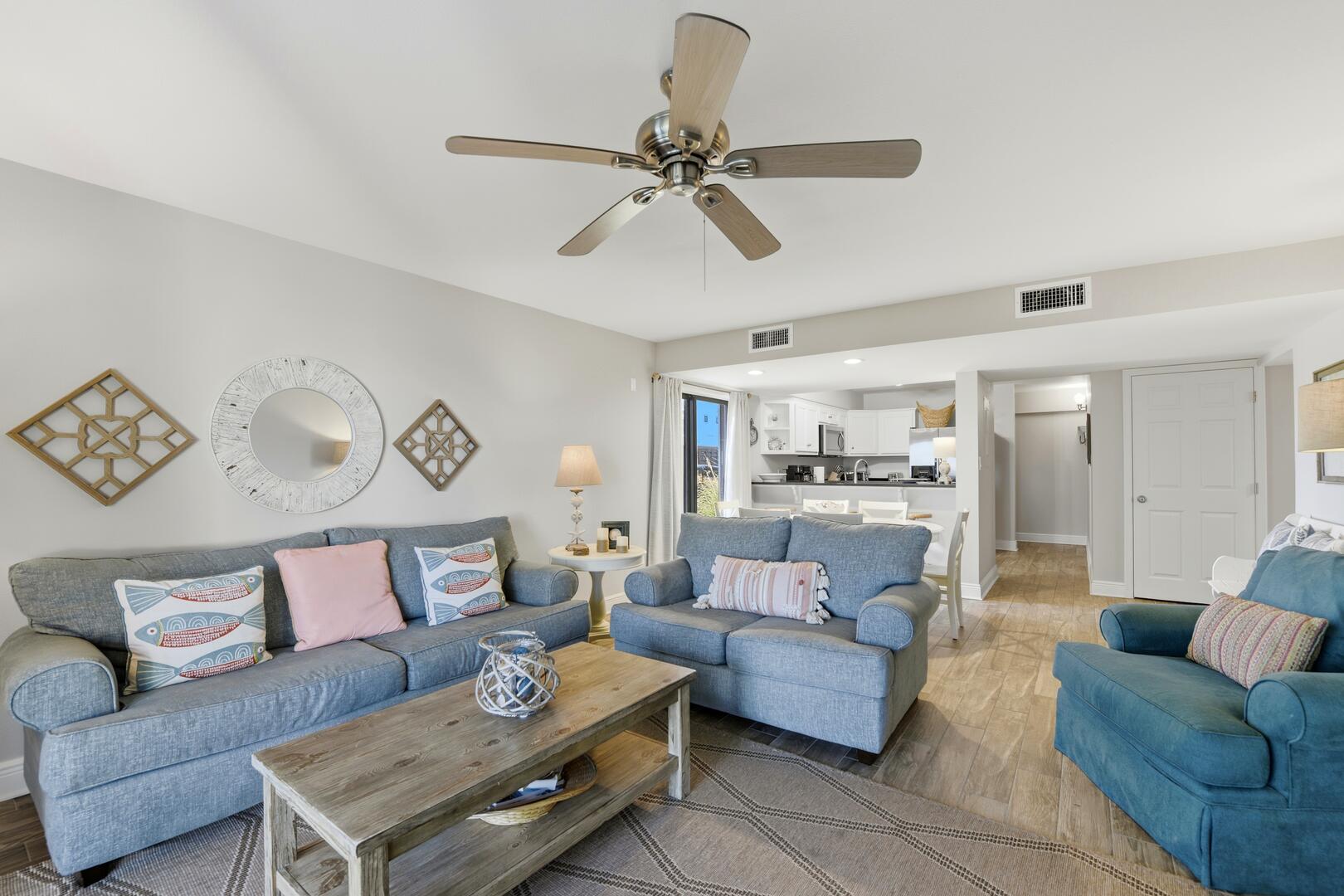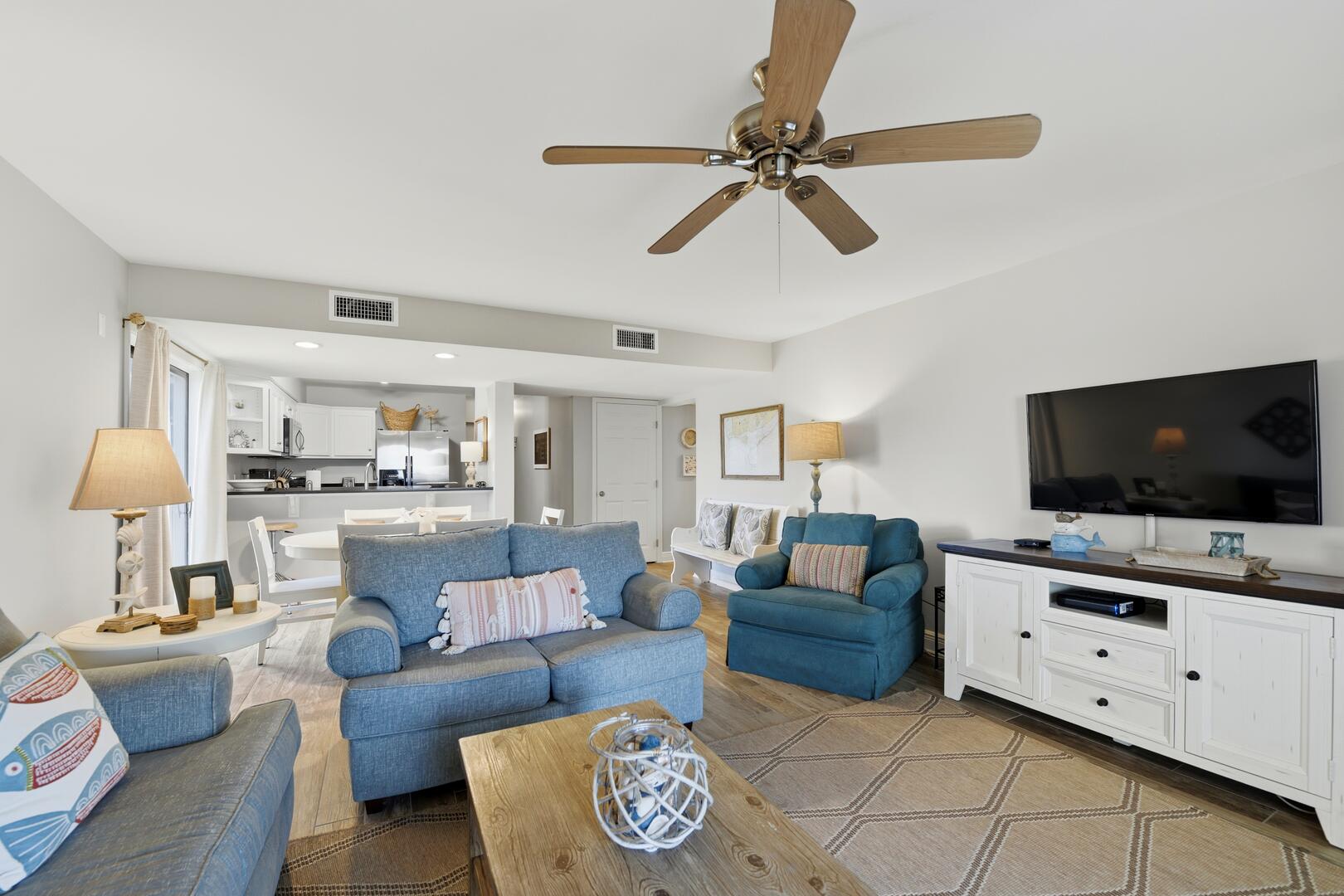AMENITIES: Multiple flat screen TVs, all new tile flooring throughout, well stocked kitchen with new cabinets, granite counter tops, stainless appliances, washer and dryer. All new furniture and decor, garden unit with patio, close to shops and restaurants, park style grills and fish cleaning area in the complex.